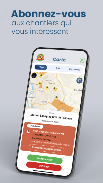 Pour être informé des chantiers qui vous intéressent, qui touchent votre lieu d’habitation ou votre trajet domicile-travail, vous pouvez opter pour le suivi de ces informations et recevoir les notifications qui les concernent.